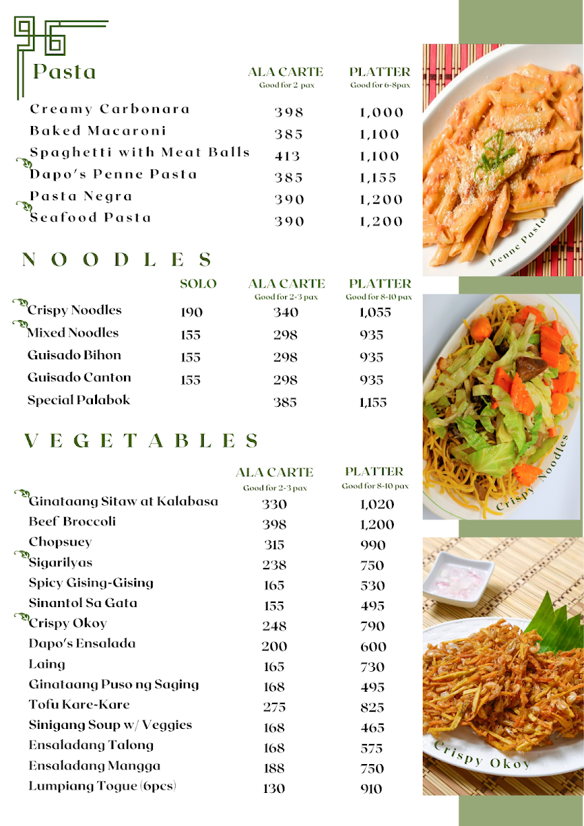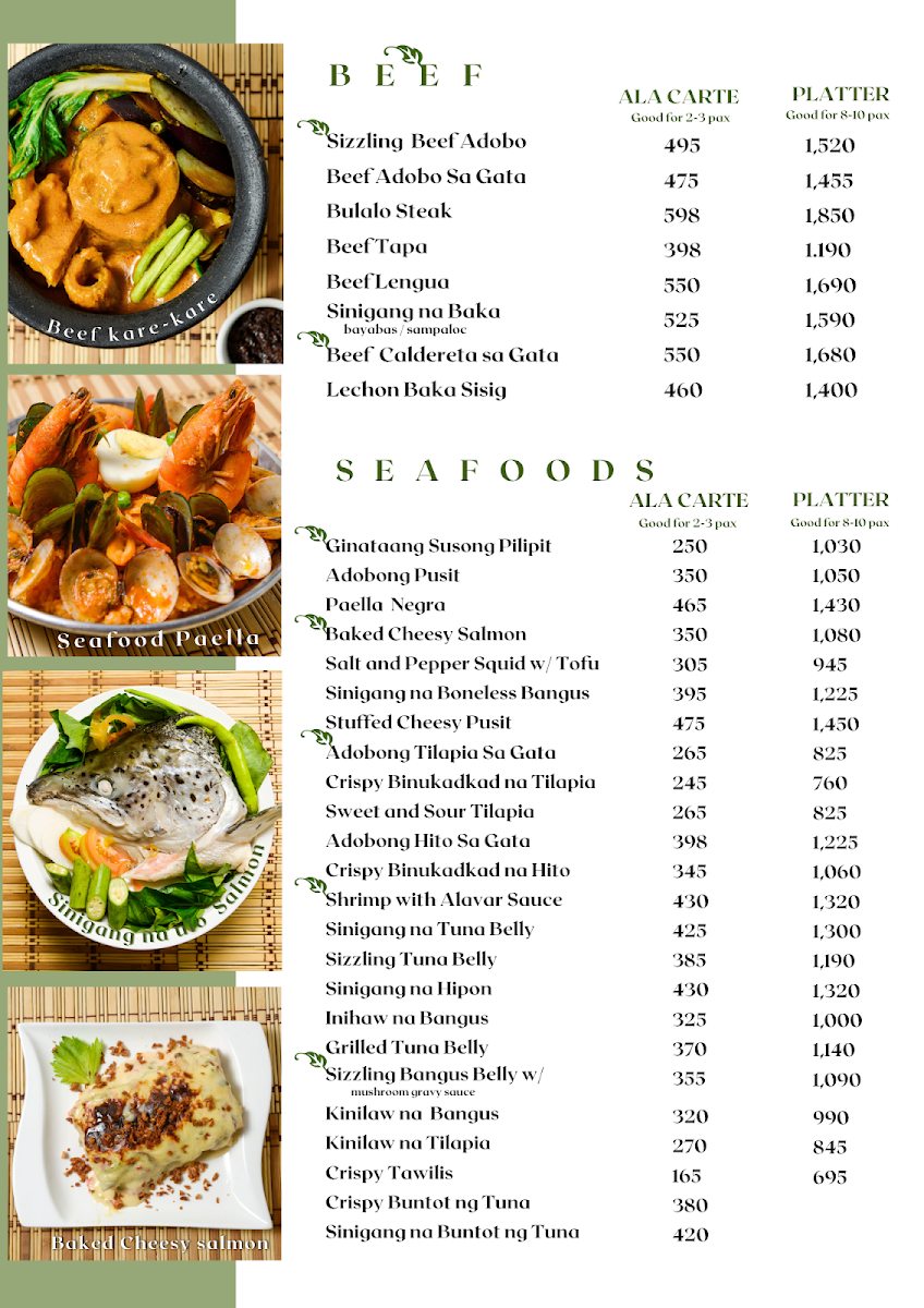 Located in Marikina City, DAPO AT TISA Filipino Cuisine offers a warm, homey atmosphere filled with nostalgic flavors. Renowned for its delectable offerings, the menu highlights dishes like pancit bihon, sinigang na salmon belly, and buttered chicken, which have garnered rave reviews from patrons. Guests can delight in the kare-kare, known for its rich sauce complemented by crispy pork, while the sizzling tofu melts in your mouth.